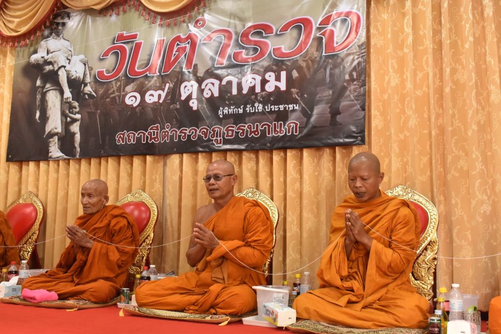 พิธีบูชาพระพุทธรูป สักการะศาลหลักเมืองอำเภอนาแก สักการะศาลเจ้าพ่อเทพมงคล พิธีทำบุญตักบาตรพระสงฆ์ อ่านสาร ผบ.ตร. กล่าวคำสัตย์ปฏิญาณ และมอบใบประกาศให้กับผู้สนับสนุนกิจการตำรวจ โดยมี นายโกเมณ ชาลี นายอำเภอนาแก นางสาวฉัฐธยาน์ บุนนาค รองนายกเทศมนตรี เทศบาลตำบลนาแก หัวหน้าส่วนราชการ ประธาน กต.ตร. พร้อมด้วยคณะกรรรมการ กต.ตร.สภ.นาแก อดีตข้าราชการตำรวจ สภ.นาแก พ่อค้าและประชาชนในพื้นที่ ร่วมเป็นเกียรติในงาน ณ บริเวณ สภ.นาแก