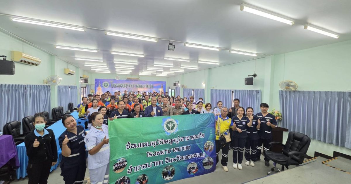 วันที่ 19 มี.ค.2569 เวลา 10.00 น. พ.ต.อ.คณพศ พนมชัย ผกก.สภ.นาแก พ.ต.ท.ภัฏ จันดาวรรณ์ รอง ผกก.ป.สภ.นาแก พ.ต.อ.คณพศ พนมชัย ผกก.สภ.นาแก มอบหมายให้ พ.ต.ท.นรเศรษฐ สืบสำราญ สวป.สภ.นาแก พร้อมสายตรวจจราจร ร่วมกับโรงพยาบาลนาแก หน่วยงานที่เกี่ยวข้อง ร่วมซักซ้อมแผนเผชิญเหตุอุบัติเหตุหมู่ บริเวณโรงเรียนบ้านดอนโทน