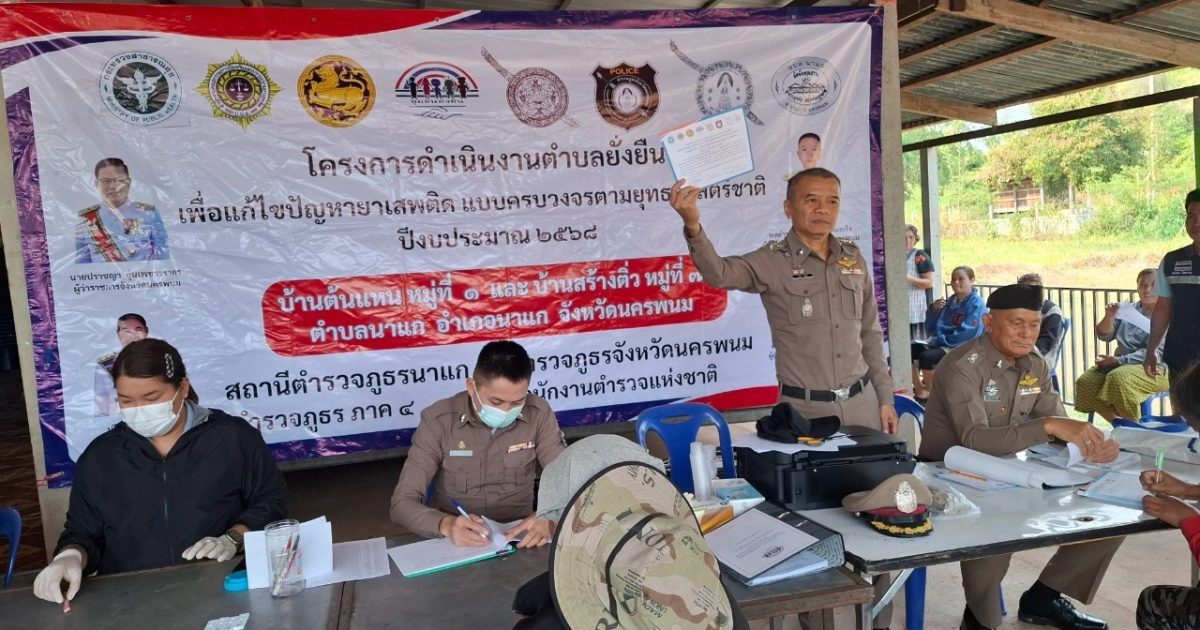 วันที่ 21 มีนาคม 2568 เวลา 09.00 น. พ.ต.อ.คณพศ พนมชัย ผกก.สภ.นาแก, พ.ต.ท.ภัฏ จันดาวรรณ์ รอง ผกก.ป.สภ.นาแก, พ.ต.ต.เกษม พั่วพันธ์ศรี สวป.(ชส.) สภ.นาแก พร้อมชุดปฎิบัติการตำบลยั่งยืน ฯ ชุดสายตรวจ สภ.นาแก ร่วมกับ ฝ่ายปกครอง, เจ้าหน้าที่ รพ.สต.บ้านสร้างติ่ว ผู้นำชุมชน,อสม.ประจำหมู่บ้าน หมู่ 7 ต.นาแก อ.นาแก จ.นครพนม ทำกา