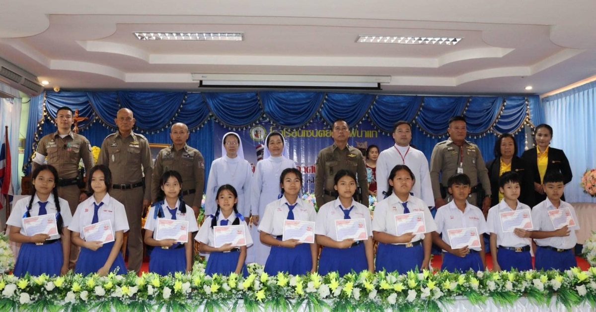 วันที่ 20 ก.พ.2568 เวลา 13.30 น. พ.ต.อ.ณรงค์ วงศ์ธรรม ผกก.สอบสวนฯ รรท.ผกก.สภ.นาแก พ.ต.ต.เกษม พั่วพันธ์ศรี สวป.(ชส.) สภ.นาแก ร.ต.อ.ภูริทัตต์ ภูริทัตตานนท์ รอง สวป. (ชส.) สภ.นาแก ร.ต.ต.วินัย มีระหงษ์ รอง สว.(ป.) ปฏิบัติหน้าที่จราจร (ครูตำรวจเข้าสอนแดร์) ส.ต.ท.กฤษณะ พุทธพันธ์ ผบ.หมู่(ป.) สภ.นาแก บาทหลวง จีระศักดิ์ อุ่นหล้า ผู้จัดการ ซิสเตอร์รัตนากร มะหัตกุล ผู้อำนวยการ ซิสเตอร์ไมตรี สมจันทร์ ที่ปรึกษา คณะคุณครูโรงเรียนเซนต์ยอแซฟนาแก ได้ร่วมดำเนินการ