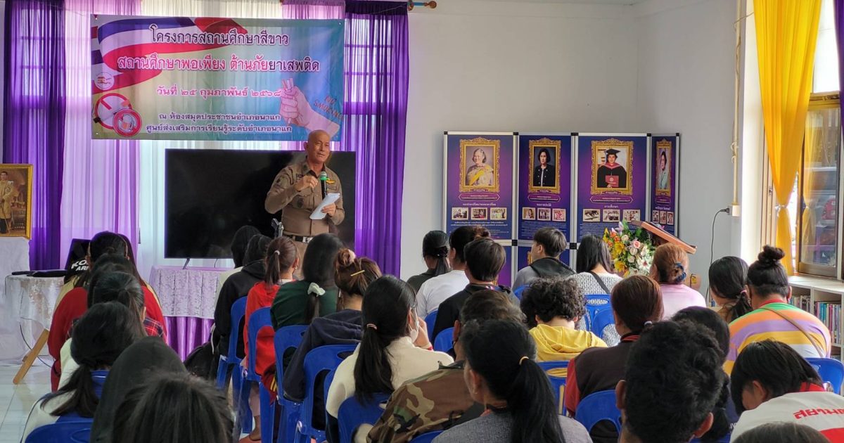 สถานศึกษาพอเพียง ต้านยาเสพติดประชาสัมพันธ์รณรงค์การป้องกันฝุ่น PM.2.5 ร่วมกันปลูกต้นไม้ ลดภาวะโลกร้อน ณ ห้องสมุดประชาชน ศูนย์การส่งเสริมการเรียนรู้ระดับอำเภอนาแก