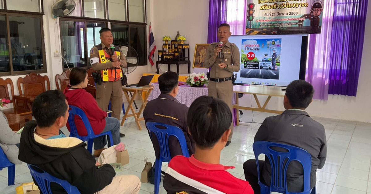 วันที่ 21 มี.ค.2568 เวลา 10.00 น. พ.ต.อ.คณพศ พนมชัย ผกก.ภ.นาแก มอบหมายให้ พ.ต.ท.นรเศรษฐ สืบสำราญ สวป สภ.นาแก ร.ต.ต.วินัย มีระหงษ์ รองสว.(ป.) สภ.นาแก พร้อมกับชุดจราจร เป็นวิทยากรให้ความรู้ เกี่ยวกับการชับขีปลอดภัยเสริมสร้างวินัยจราจร ให้กับนักศึกษาศูนย์ส่งเสริมการเรียนรู้อำเภอนาแก ณ ห้องสมุดประชาชนอำเภอนาแก