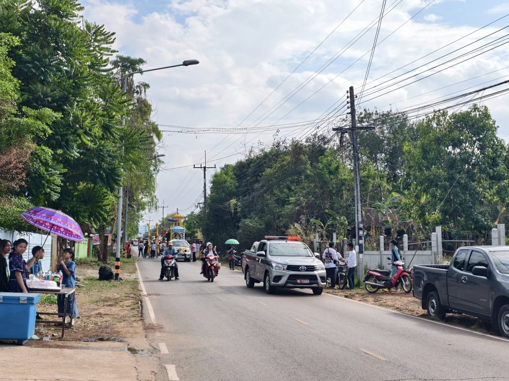วันที่ 14 มี.ค.2568 เวลา 14.00 น. สายตรวจจราจรอำนวยความสะดวกการจราจรขบวนแห่พระเวสสันดร ณ วัดธาตุศรีคุณ อ.นาแก