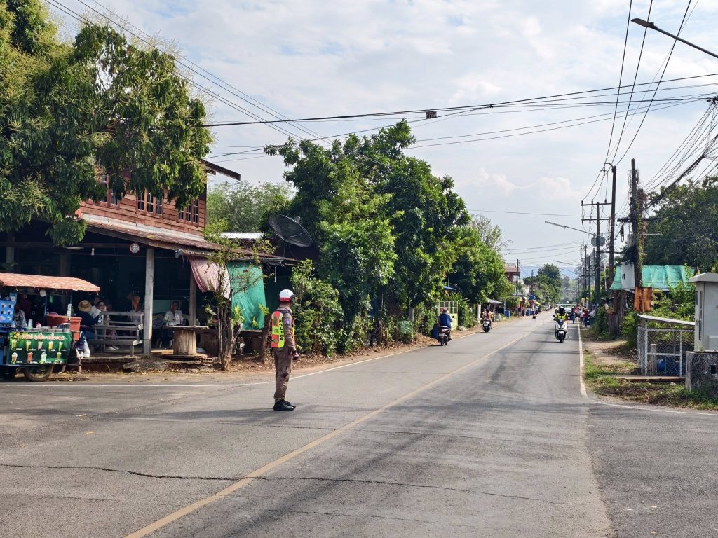 วันที่ 14 มี.ค.2568 เวลา 14.00 น. สายตรวจจราจรอำนวยความสะดวกการจราจรขบวนแห่พระเวสสันดร ณ วัดธาตุศรีคุณ อ.นาแก
