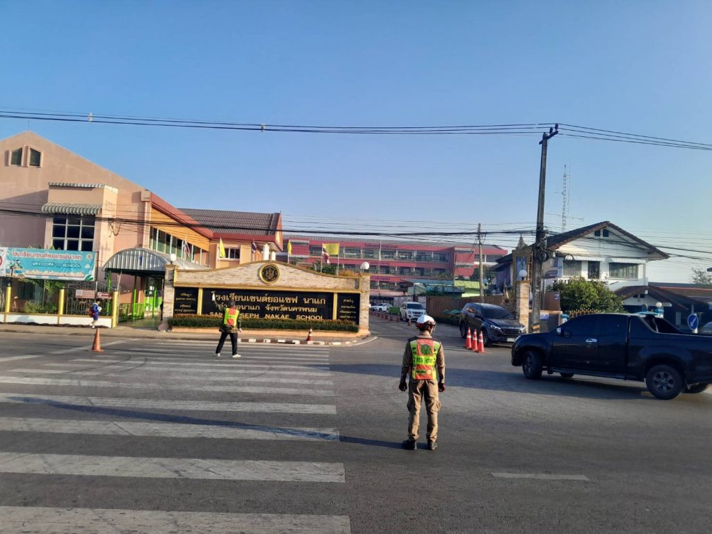 วันที่ 7 ม.ค.2568 เวลา 07.00 น. สายตรวจจราจร สภ.นาแก อำนวยการจราจรบริเวณหน้าโรงเรียนเซนต์ยอแซฟนาแก