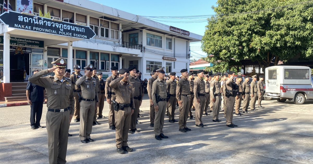 วันที่ 23 ธ.ค.2568 พ.ต.อ.คณพศ พนมชัย ผกก.สภ.นาแก พ.ต.ท.สุขขี บุญเต็ม รองผกก.สส.สภ.นาแก พ.ต.ท.กองเกียรติ จันทร์สนิท รอง ผกก.(สอบสวน.) สภ.นาแก พ.ต.ท.ภัฏ จันดาวรรณ์ รอง ผกก.ป.สภ.นาแก พร้อมข้าราชการตำรวจ สภ.นาแก เข้าแถวเคารพธงชาติ สวดมนต์ไหว้พระ ประจำสัปดาห์ ชี้แจงข้อราชการพร้อมเน้นย้ำ พร้อมตรวจเครื่องแต่งกายทรงผม อุปกรณ์ในการปฏิบัติหน้าที่ ความพร้อมในการปฏิบัติหน้าที่ของข้าราชการในหน่วย ณ ณ ลานหน้า สภ.นาแก