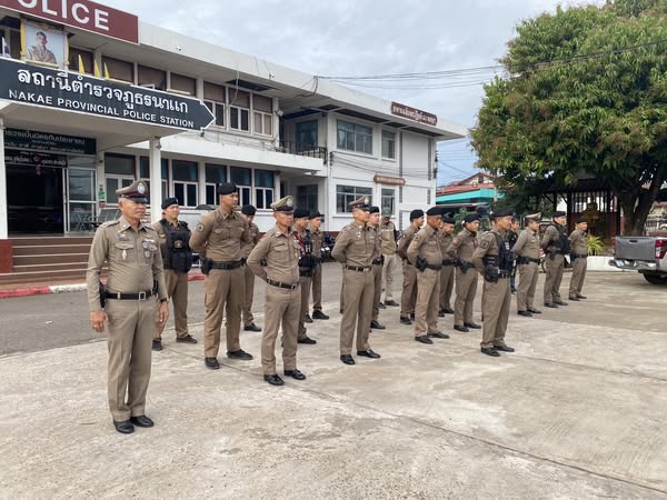 วันที่ 25 ก.พ.2568 เวลา 08.00 น. พ.ต.อ.ณรงค์ วงศ์ธรรม ผกก.(สอบสวน)ฯ รรท.ผกก.สภ.นาแก มอบหมายให้ พ.ต.ท.นรเศรษฐ สืบสำราญ สวป.สภ.นาแก เรียกแถวข้าราชการ สภ.นาแก สวดมนต์ไหว้พระ กล่าวคำสัตย์ปฎิญาน อุดมคติตำรวจ ตรวจเครื่องแต่งกาย ทรงผม และรับฟังข้อราชการ ณ ลานหน้าเสาธง สภ.นาแก