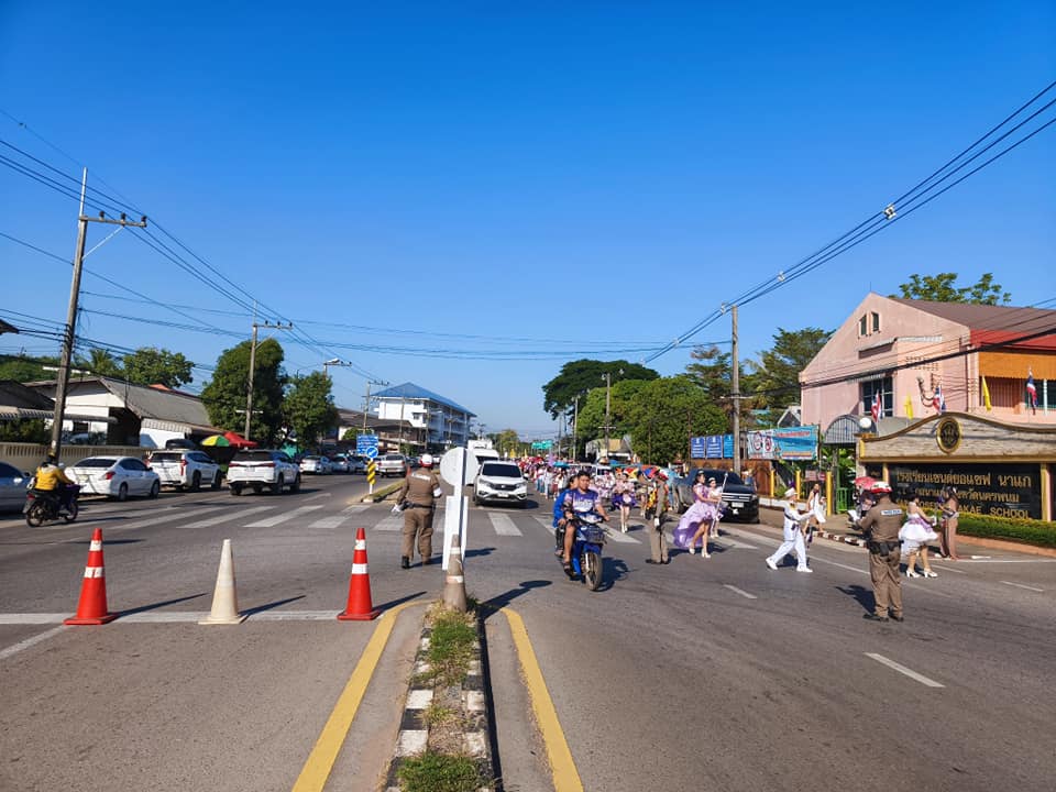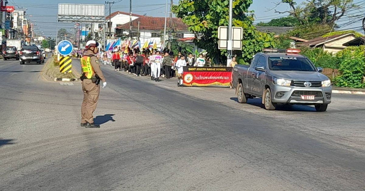 อำนวยความสะดวกการจราจรขบวนพาเหรดกีฬาสีโรงเรียนเซนต์ยอแซฟนาแก